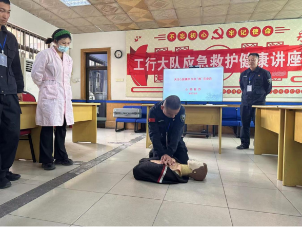 為進一步提高基層員工面對突發(fā)疾病的應(yīng)急處置能力,近日,金融護衛(wèi)中心工行大隊特邀湖田中心醫(yī)院醫(yī)生,在大隊駐地開展應(yīng)急救護健康講座。 講座現(xiàn)場,醫(yī)生認(rèn)真細(xì)致地講解了心肺復(fù)蘇的基本流程和步驟,并對徒手心肺復(fù)蘇操作要領(lǐng)進行了重點說明。隨后現(xiàn)場演示了胸外心臟按壓、清理口腔異物、開放氣道、人工呼吸,并對心肺復(fù)蘇按壓深度、按壓頻率等重點環(huán)節(jié)的操作要領(lǐng)和流程逐一進行講解和示范。隊員們積極參與,現(xiàn)場體驗徒手心肺復(fù)蘇操作,確保此次活動取得實效。 工行大隊將持續(xù)深化關(guān)心關(guān)愛基層職工工作,不斷提升職工應(yīng)對突發(fā)緊急事件的自救和處置能力,增強職工的獲得感、幸福感。