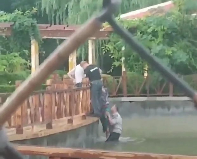 兒童公園有一名女子落水,保安員辛慶祝下水將其救起。網(wǎng)友提供視頻顯示,在該公園人工湖內(nèi),一名保安下水將女子托起,另外兩人站在欄桿附近,用力將女子拉上岸邊。辛慶?;貞浾f,女子被救上岸后并無大礙,隨后被他送離公園,辛慶祝說只是舉手之勞而已。他的舉手之勞溫暖了這座城市,更是我們身邊的凡人英雄,為他們點(diǎn)贊。